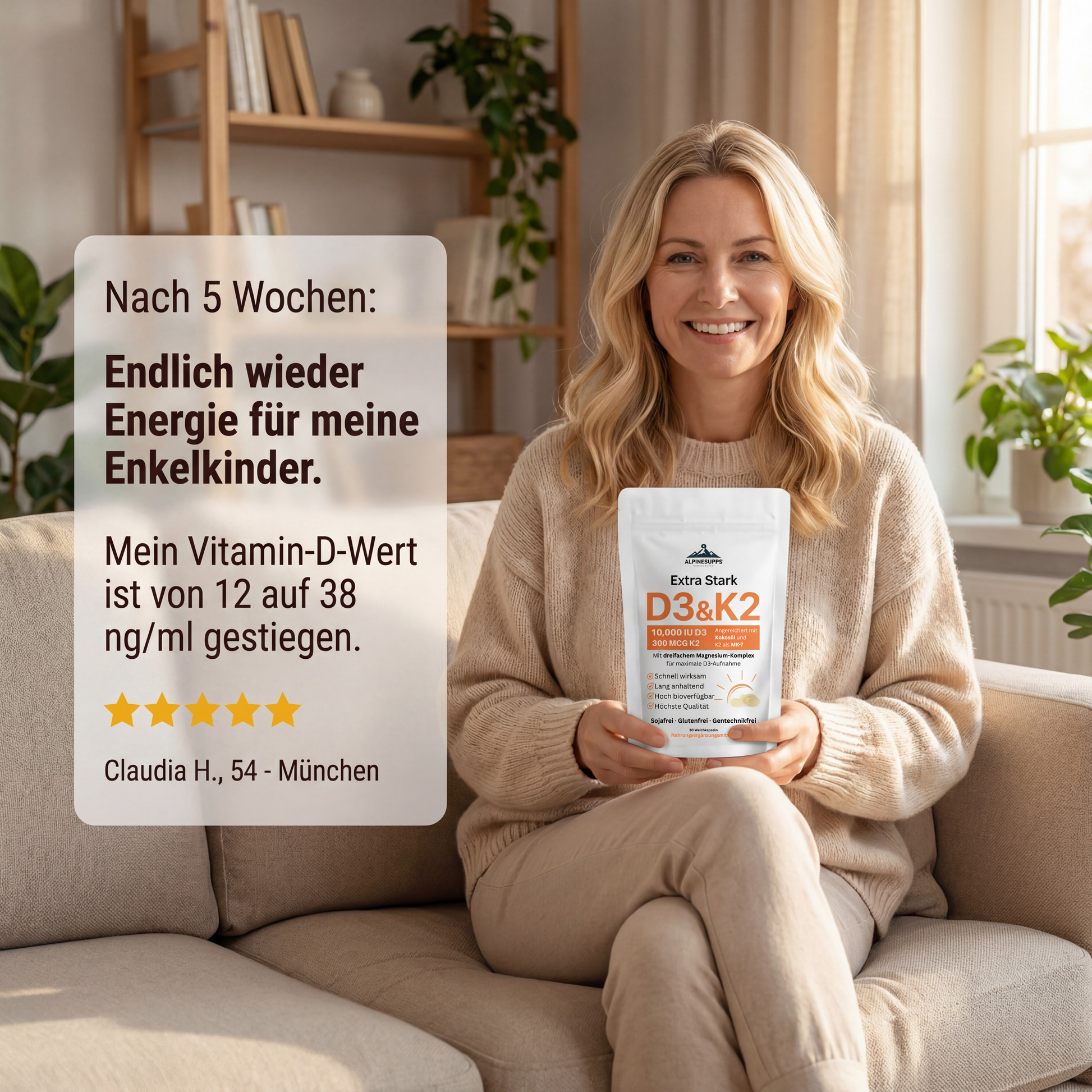 Wir möchten, dass du dich mit Alpinsupps D3+K2 rundum wohl und sicher fühlst – ganz ohne Risiko.